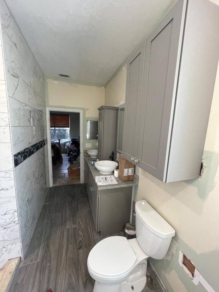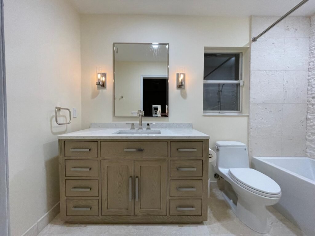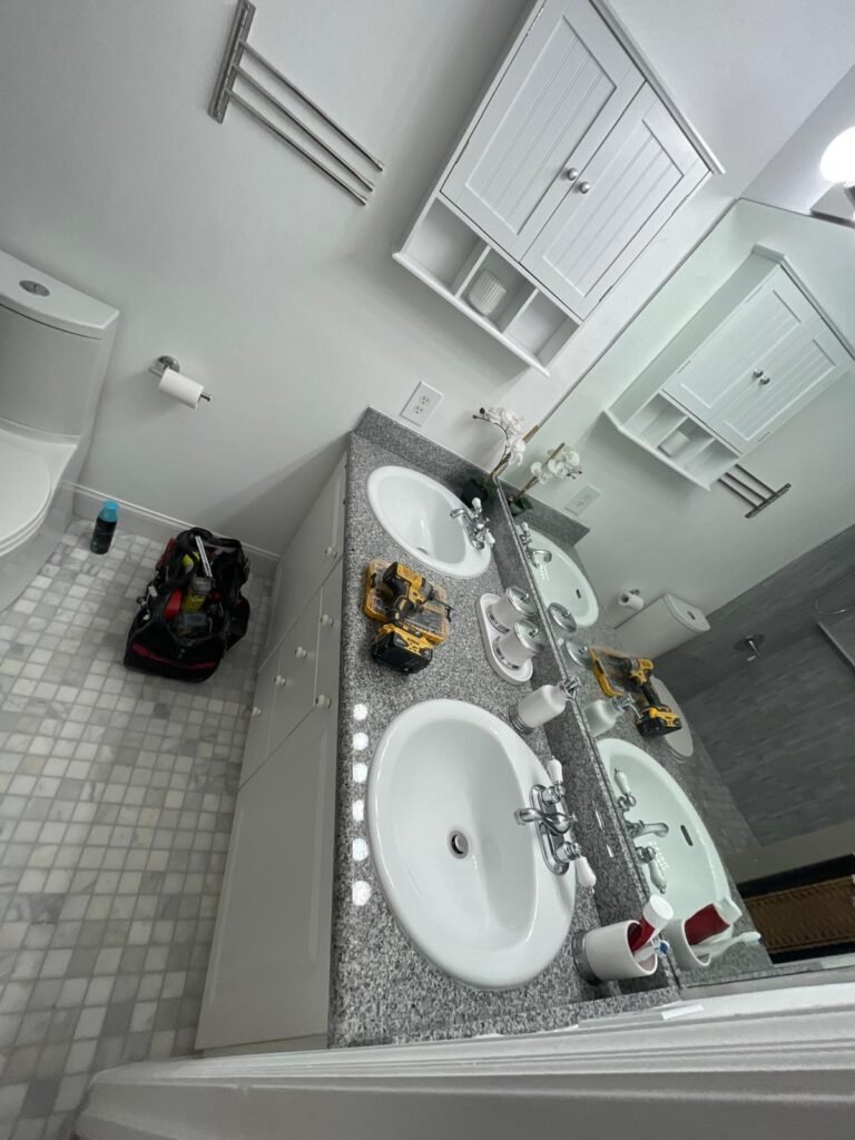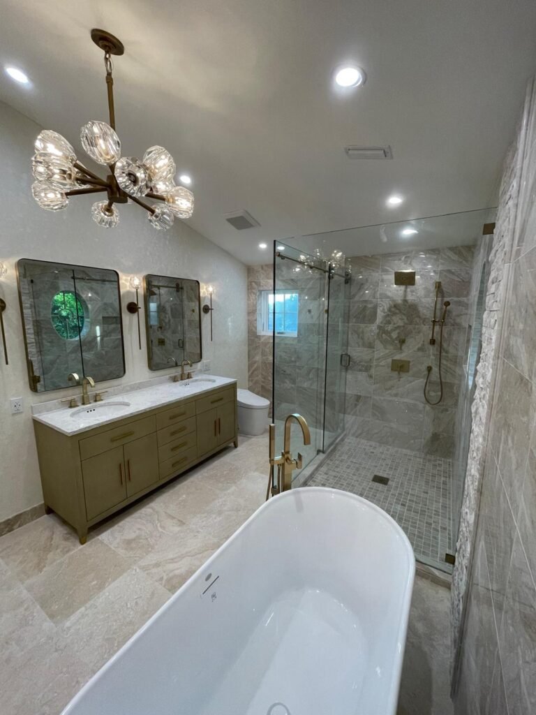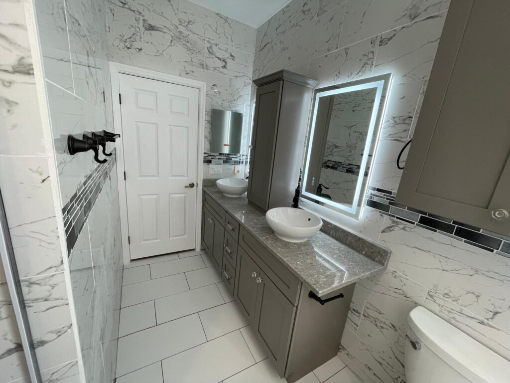 Specialized kitchen and bathroom design with careful attention to layout, materials, lighting, and technical details